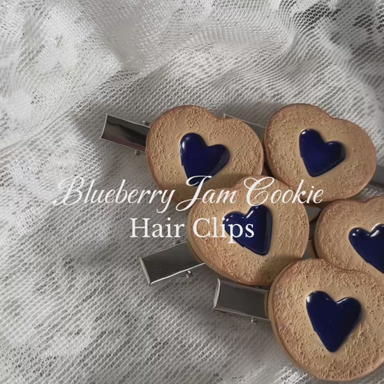 Blueberry Jam Heart Clay Cookie Hair Clips