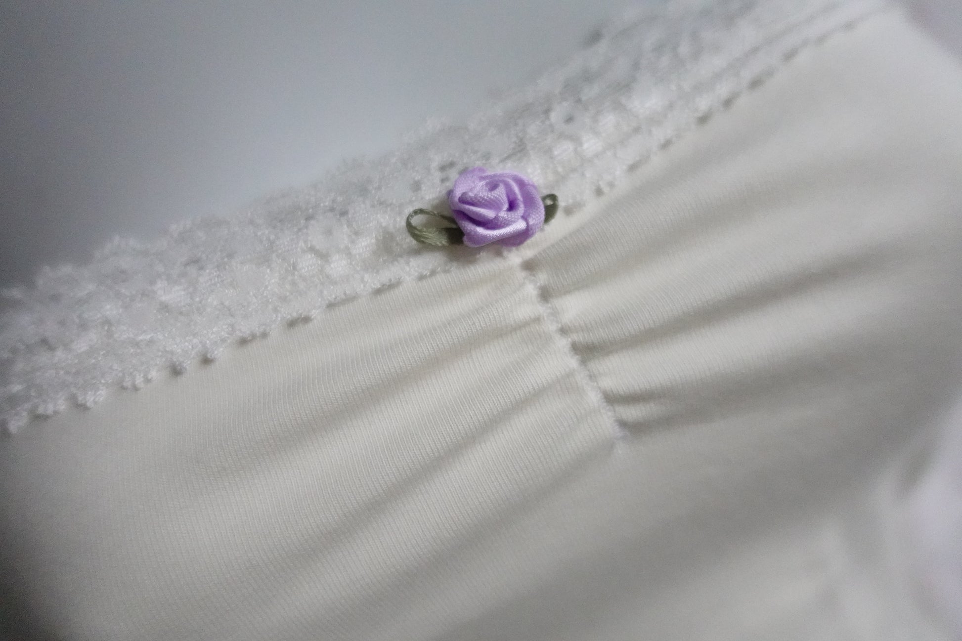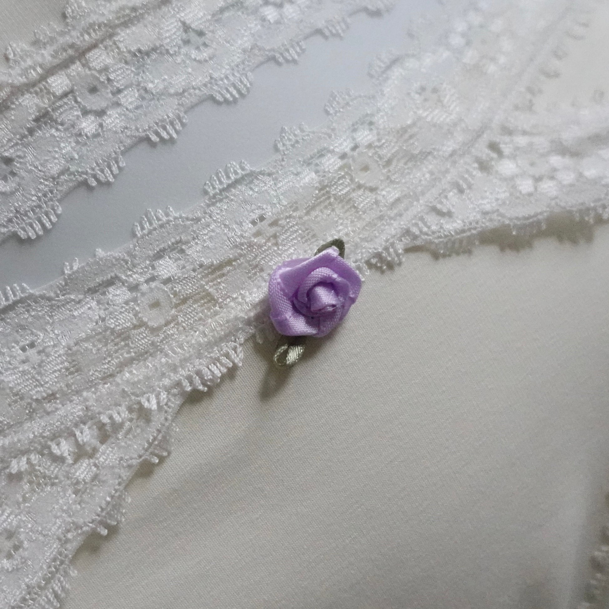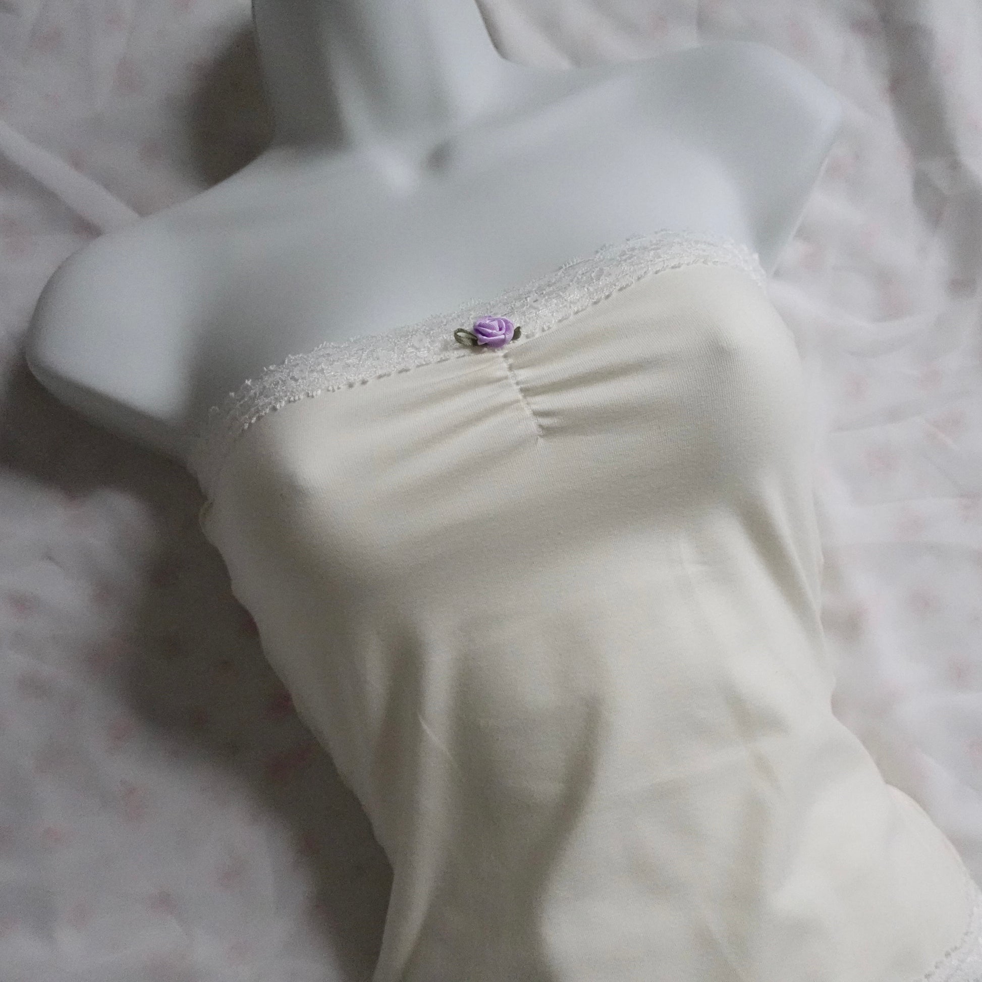 The cutest matching longline ruched lace tube top and lace trim low-rise panty set. Features purple ribbon roses as a sweet accent and the top of the tube top is elasticated to prevent slipping, perfect for a sleepwear set or Christmas gift for someone special. πΈππ